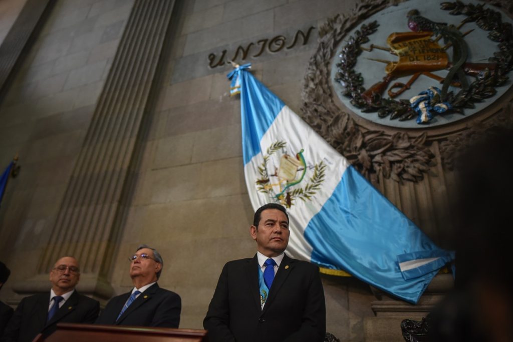 El expresidente Jimmy Morales acude a una sesión solemne en el Congreso, previo a la lectura del segundo informe de labores el 14 de enero de 2018. Foto/Edwin Bercián.